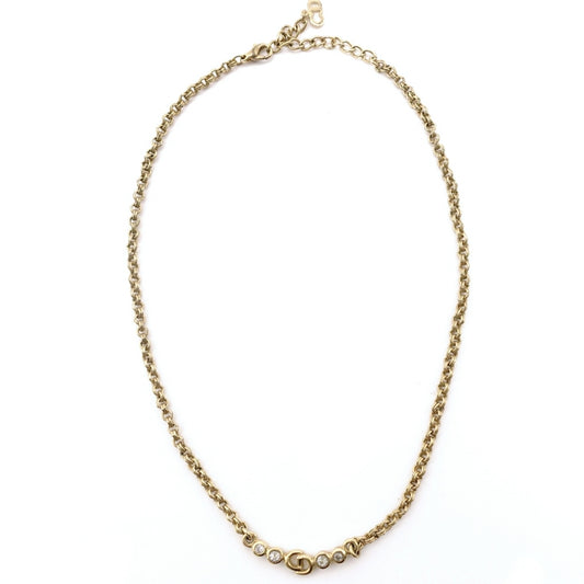 Christian Dior Necklace Gold CD Logo Rhinestone 7-7-1104