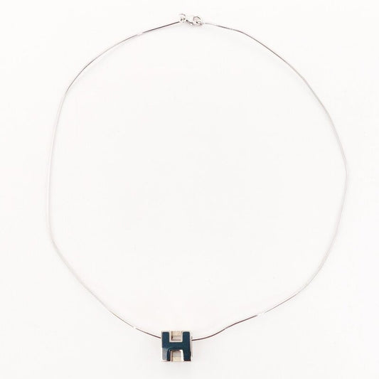 Hermès HERMES Cage d'Or H Cube Necklace Blue × Silver H Logo With Box 7-9-418