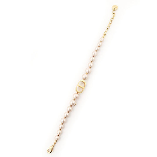 DIOR 30 Montaigne Fake Pearl Bracelet with CD Logo Pink Gold Hardware Bangle 7-10-480