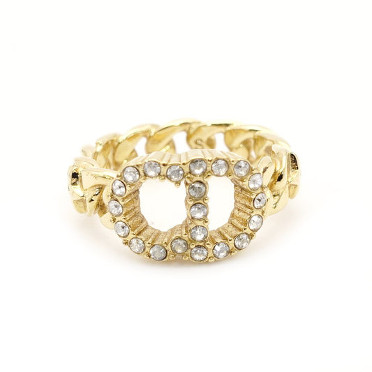 Christian Dior Ring Cuff Set Gold Rhinestone CD Logo Men's Women's 7-10-481