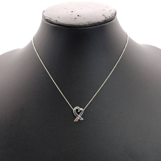 Tiffany & Co. Open Heart Necklace 1P Pink Sapphire Silver 925 Approximately 3g