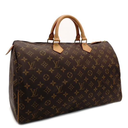 Louis Vuitton Speedy 40 Monogram Canvas Handbag Brown PVC Leather 7-9-518