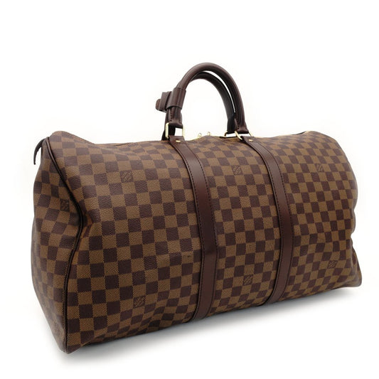 LOUIS VUITTON Keepall 50 Damier Canvas Handbag Brown PVC Leather Speedy Travel Boston 7-10-173