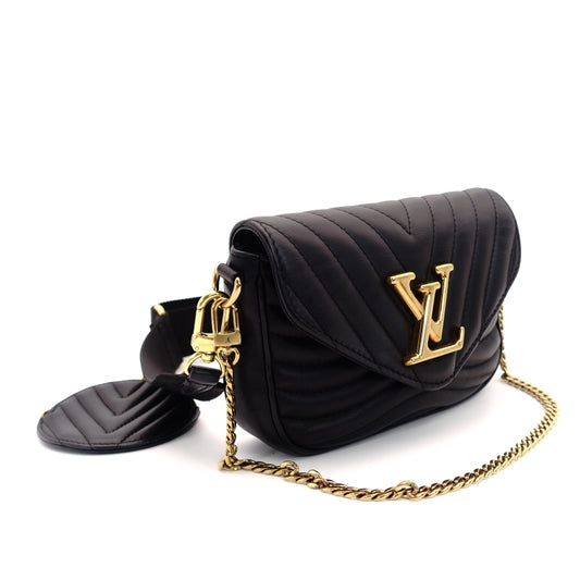LOUIS VUITTON New Wave Shoulder Bag Black Leather Black Gold Hardware Logo