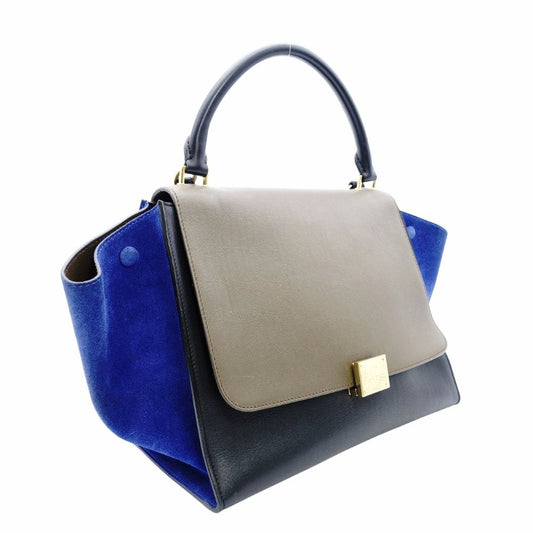 Céline Trapeze Handbag Brown × Black × Blue 2-Way Suede Leather Shoulder 7-12-372