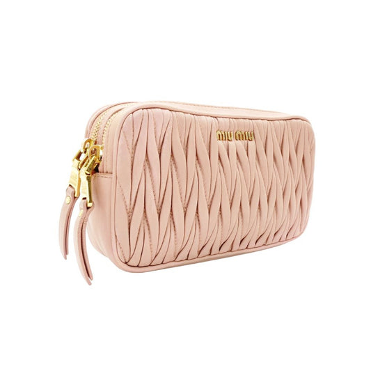 MIU MIU Matelassé Shoulder Bag Pink Leather Crossbody Gold Hardware 7-12-677