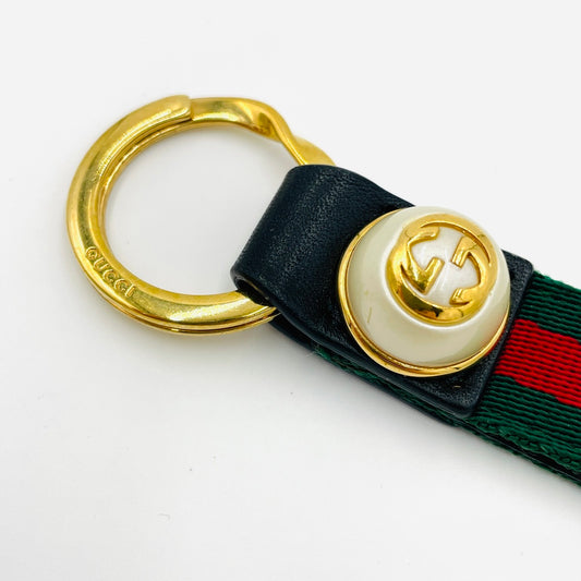 GUCCI Key Charm Sherry Line Key Holder Black Logo Leather Keyring Excellent Condition 7-2-128