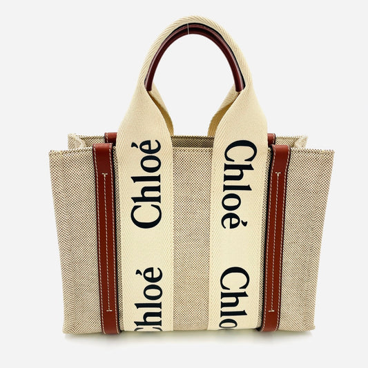 CHLOE woody Hand bag 2Way Canvas Beige