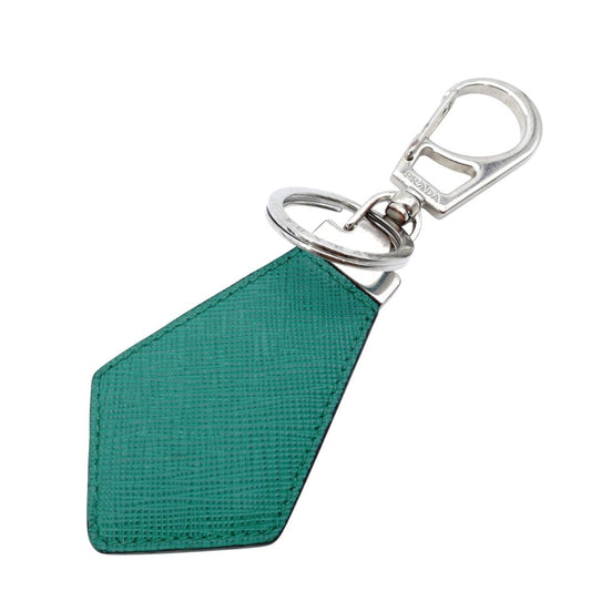 PRADA Saffiano Leather Key Ring Green Key Charm Green Silver Hardware 7-12-090