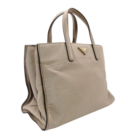 PRADA Galleria Handbag Greige Leather 2-Way Tote Women's Gold Hardware R801287