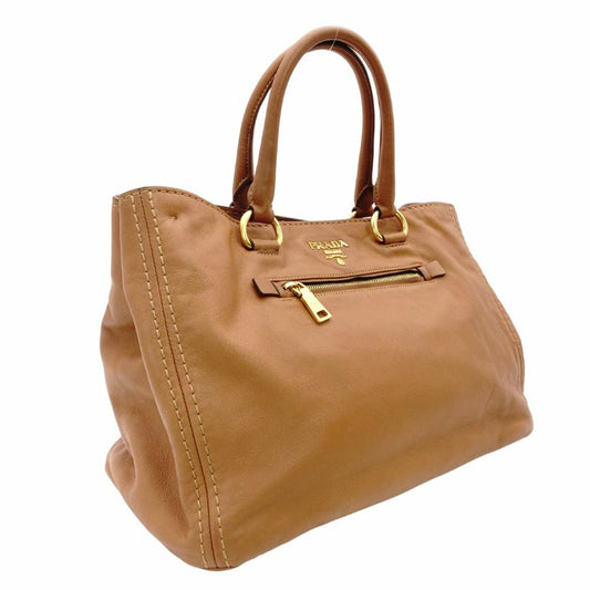 PRADA Vittorino Leather Tote Bag Brown 2-Way Leather Brown Gold Hardware Handbag R801567