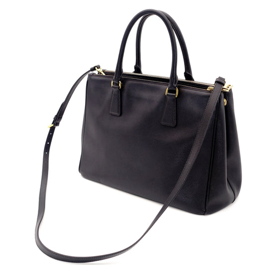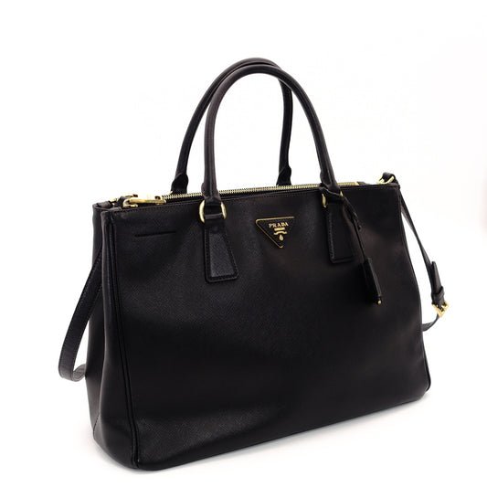 PRADA Galeria 2way Style Bag Black Leather Gold Metal Fittings
