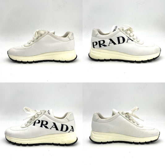 PRADA Women's Sneakers White Size 36.5 (9.3") Logo Nylon With Box 7-5-988