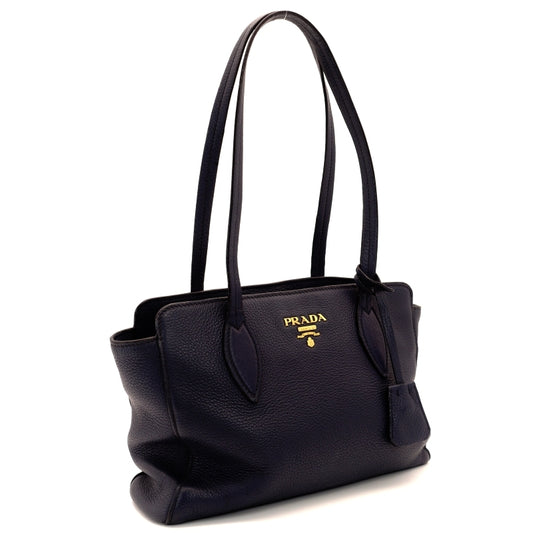 PRADA Tote Bag Blue Leather 1BG112 Gold Hardware Shoulder Bag