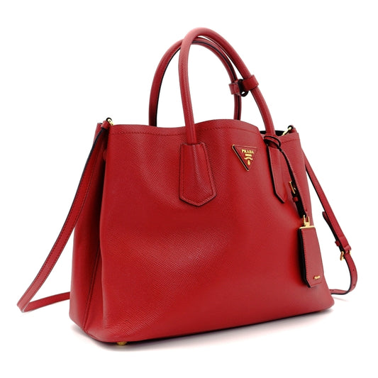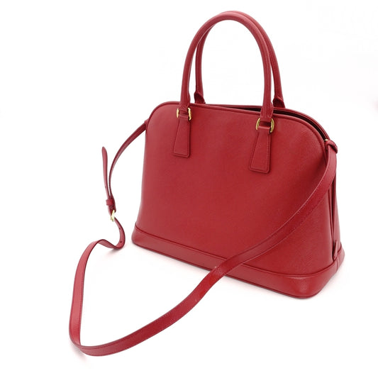 PRADA Handbag 2way Red Saffiano Leather Red Gold Hardware