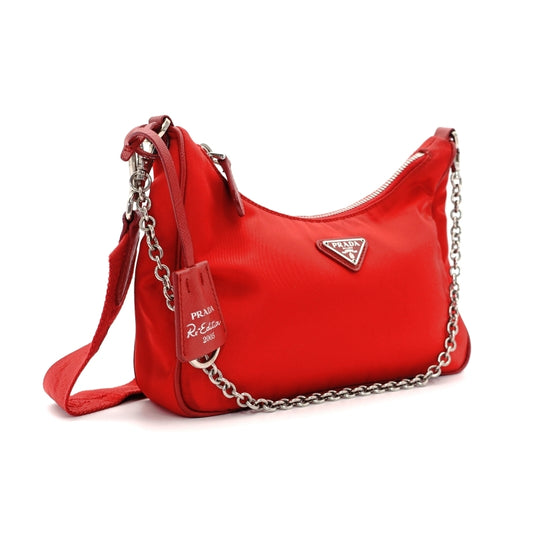 PRADA 2way Bag Red Re Nylon Gold Hardware