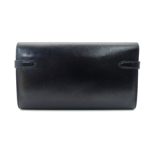 HERMES Kelly Wallet Leather Navy Silver Hardware Long Wallet with Engraving 7-10-799