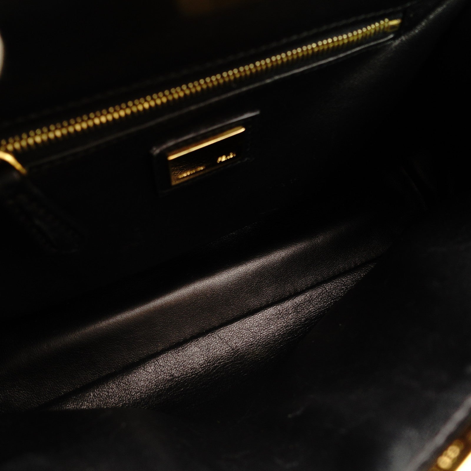 FENDI Mini Peekaboo Handbag Black Leather 2-Way Crossbody Black Gold Hardware 7-10-1013