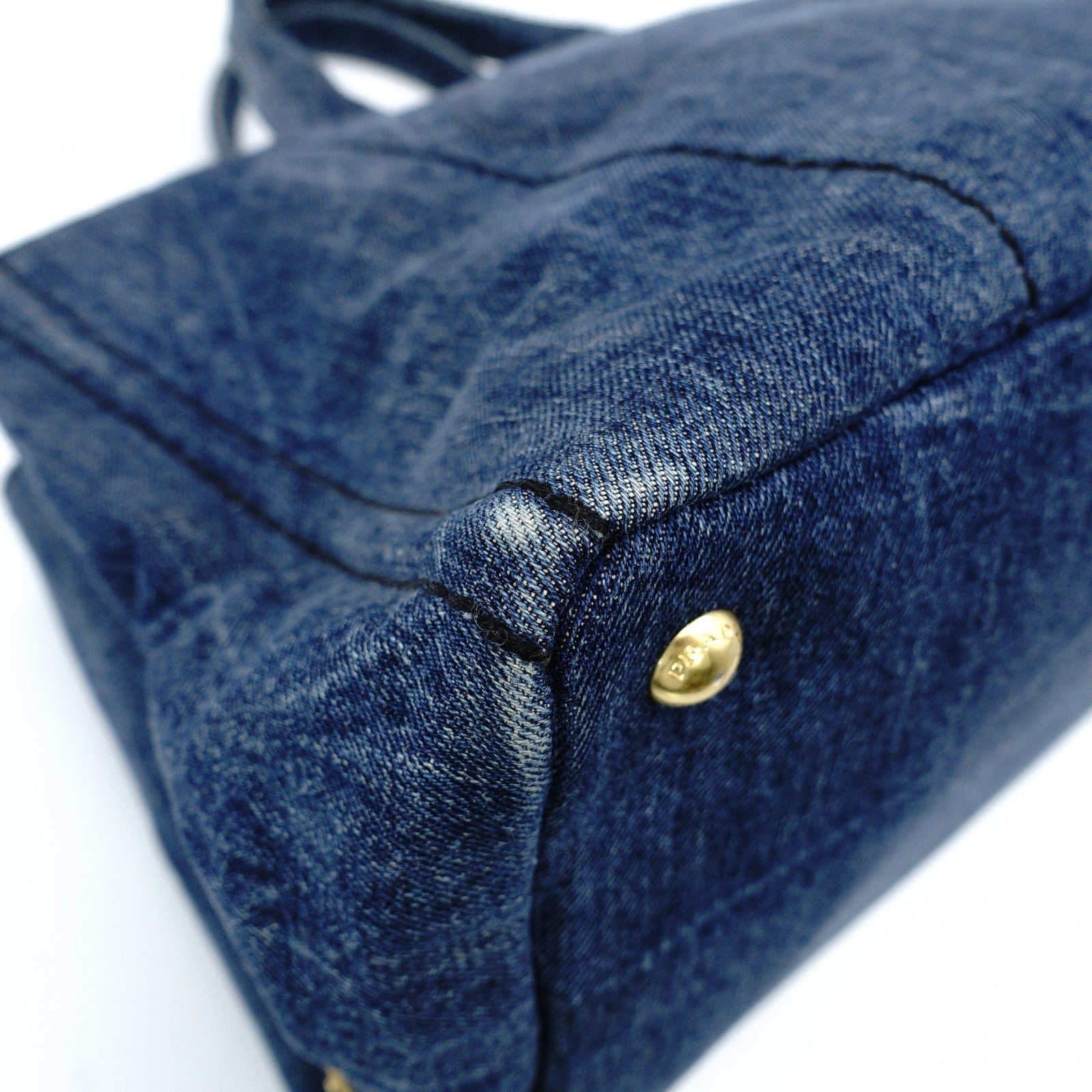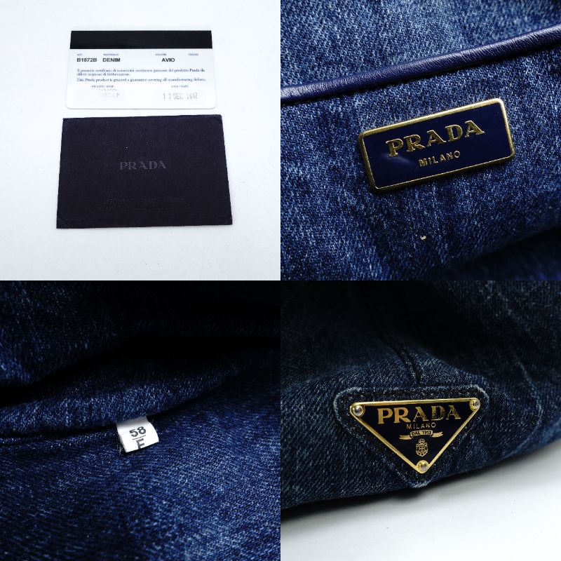 PRADA Canapa L Size Handbag Denim Canvas Tote Gold Hardware 7-10-215