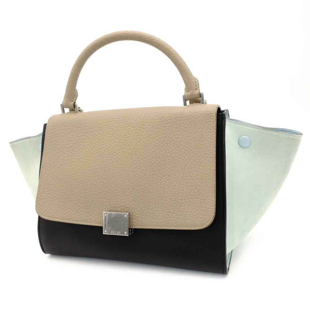 Celine Trapeze Handbag Leather 2-Way Black × Beige × Light Blue Shoulder 7-10-223