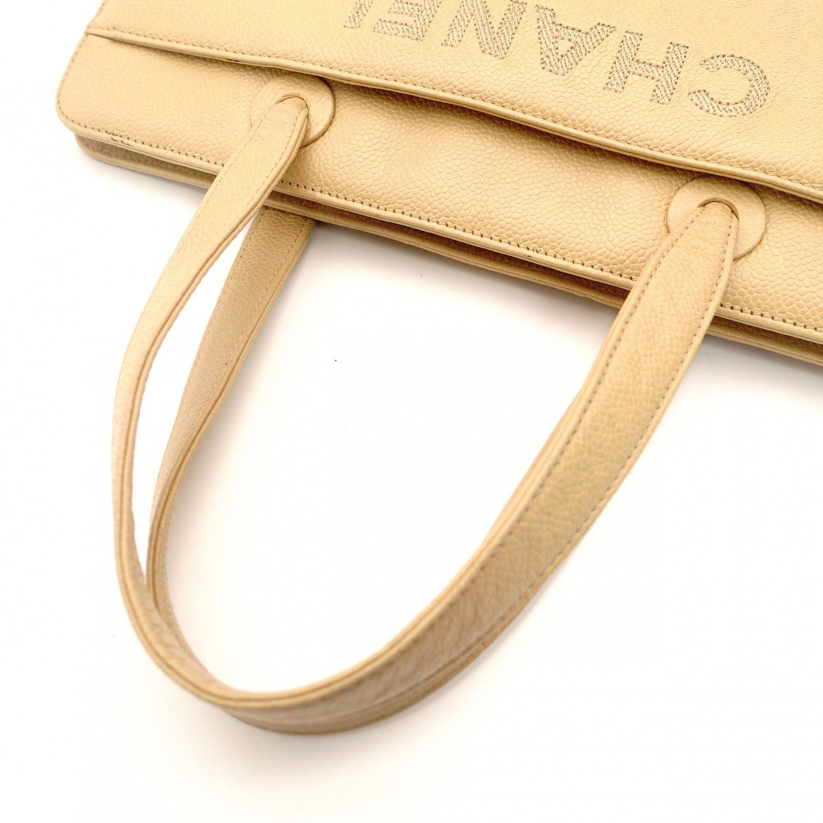 CHANEL Bicycline Tote Bag Caviar Leather Beige Leather Shoulder Vintage 7-10-682