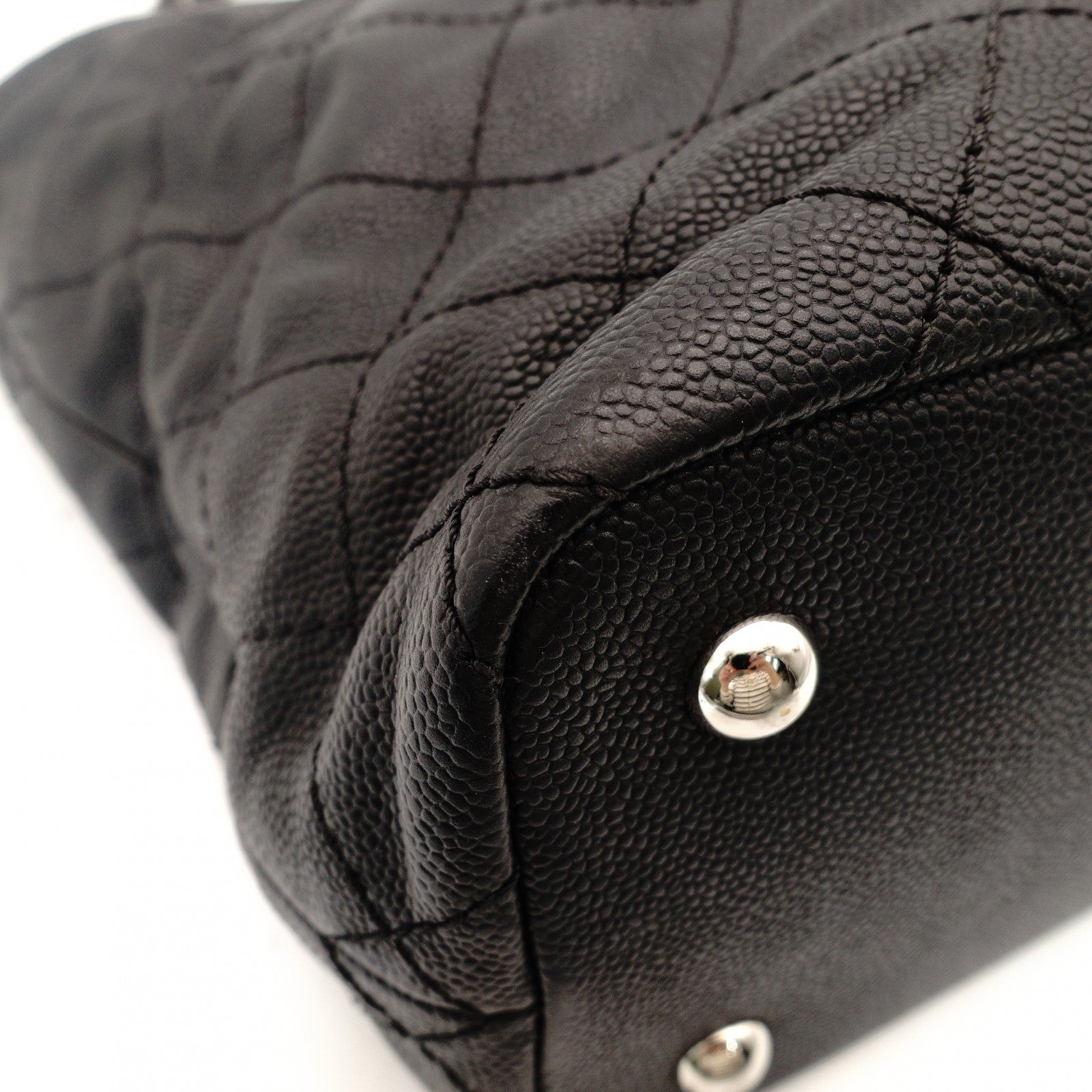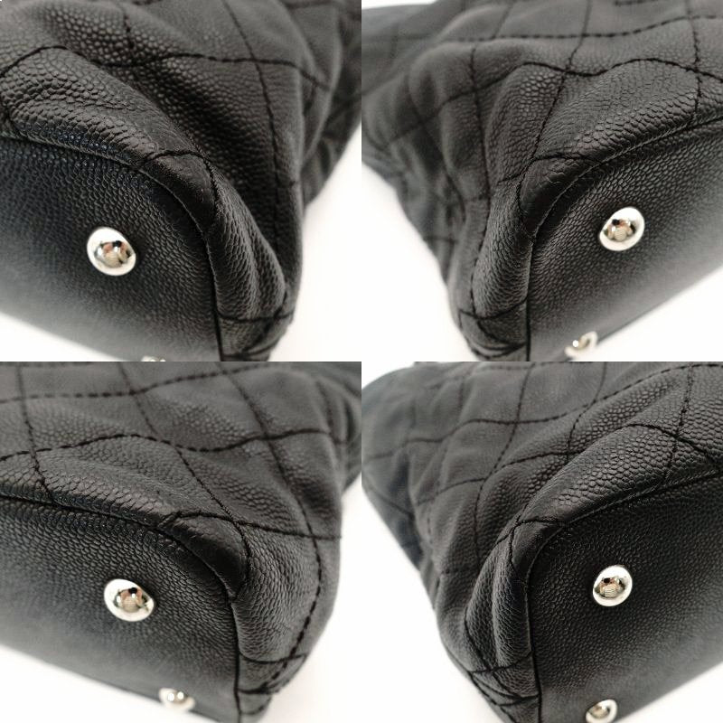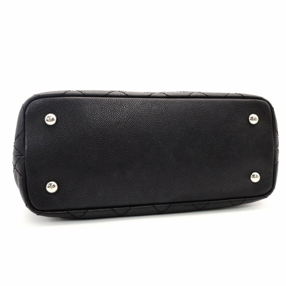 CHANEL Matelassé Coco Mark Caviar Skin Tote Bag Black Silver Hardware Shoulder 7-10-684