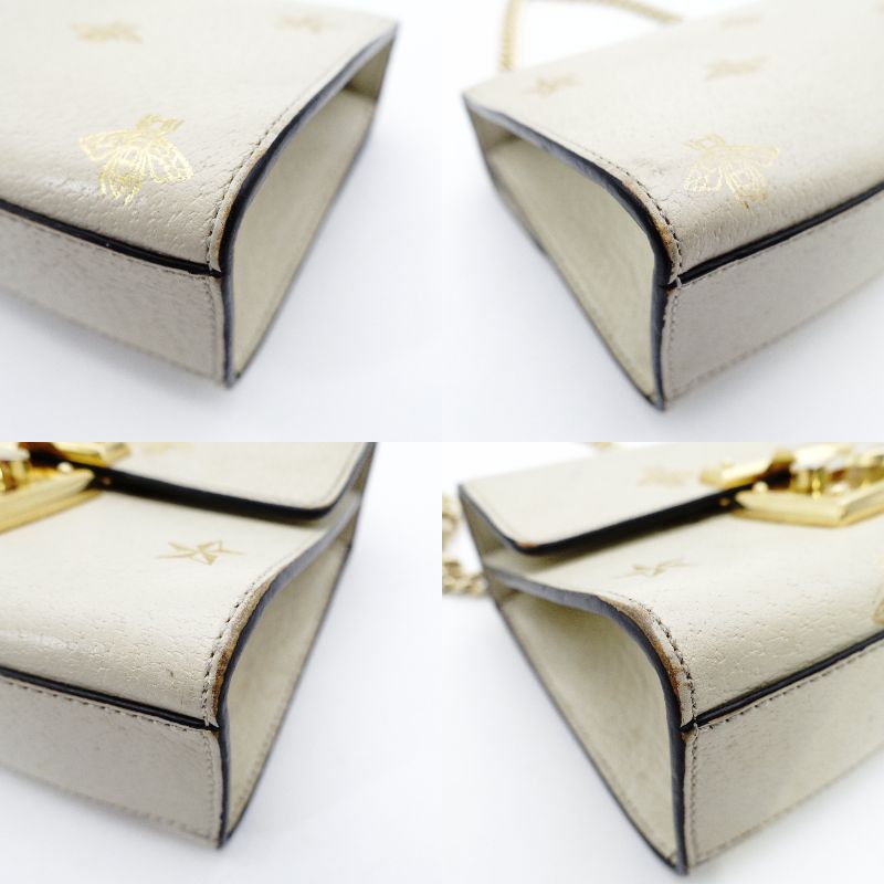 GUCCI Padlock Beestars Chain Shoulder Bag Beige Leather Crossbody 7-10-703