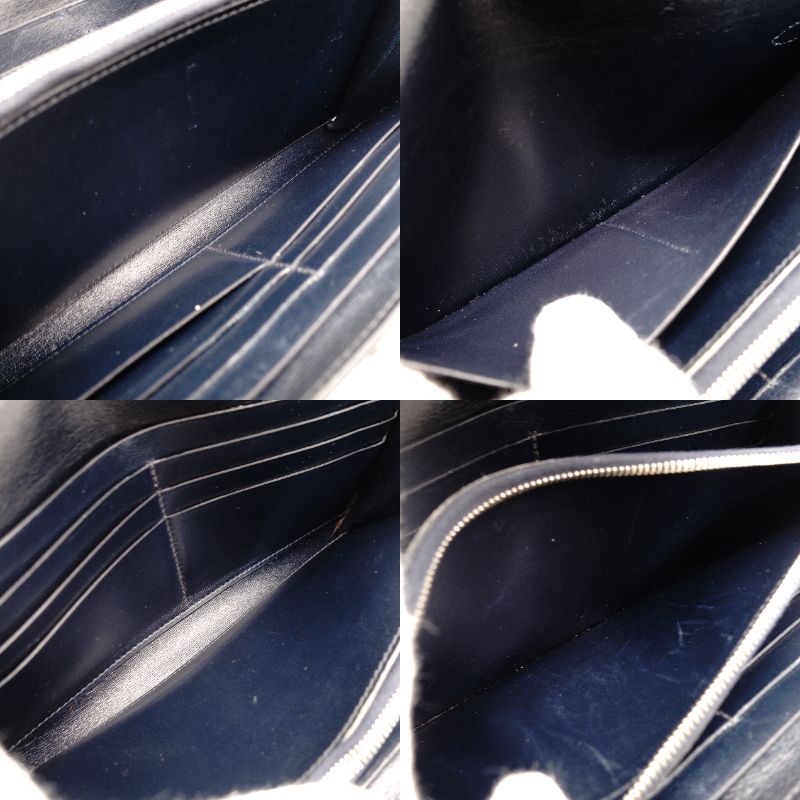 HERMES Kelly Wallet Leather Navy Silver Hardware Long Wallet with Engraving 7-10-799
