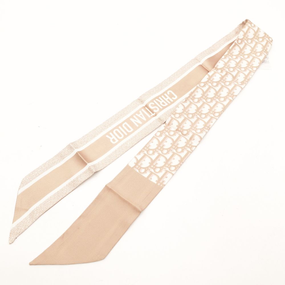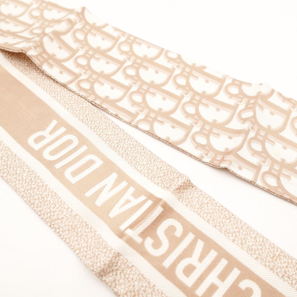 Christian Dior Mitzah Scarf 100% Silk Twilly Pink Beige × White 7-10-842