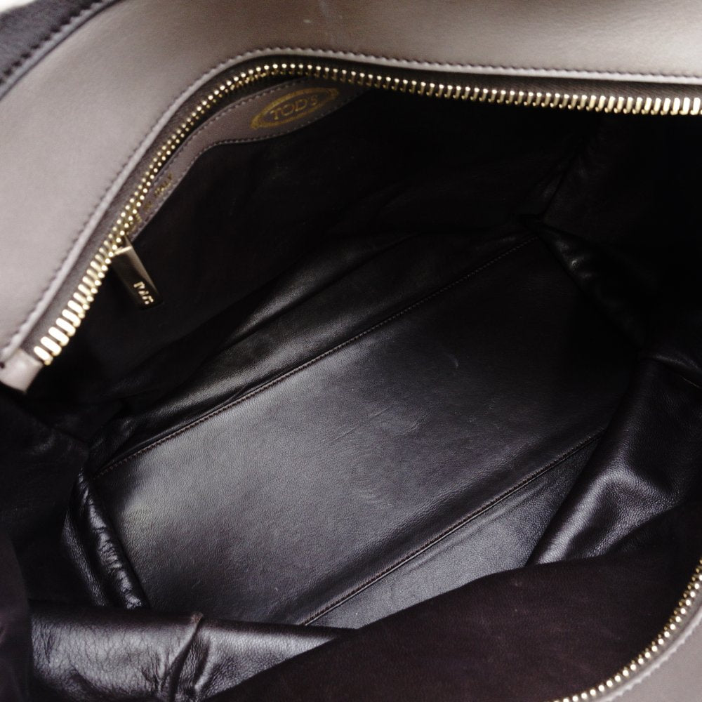 Tod's Ava Tote Bag Leather Brown Two-Tone Shoulder Bag with Charm 7-10-969