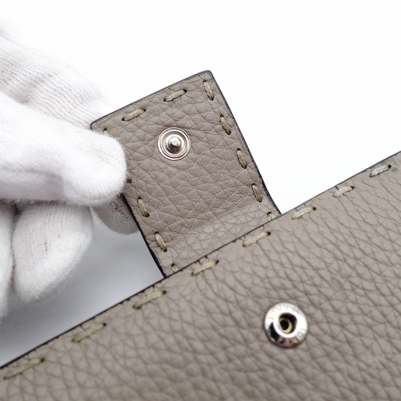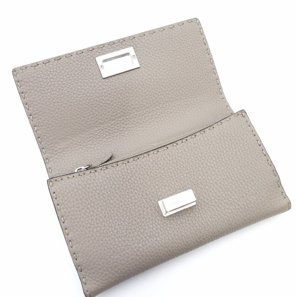FENDI Celeria Peekaboo Long Wallet Leather Beige Silver Hardware With Box 7-11-416