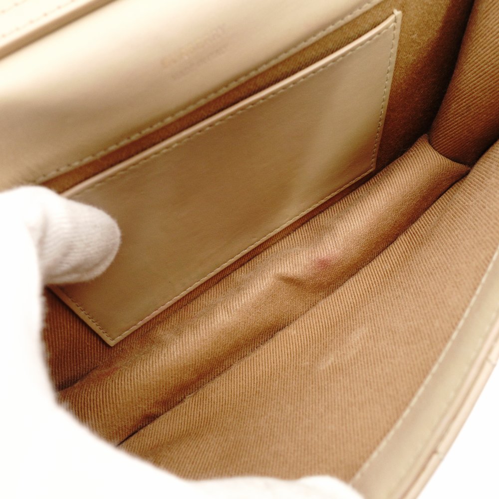 Burberry Laura TB Logo Chain Shoulder Bag Beige Leather Gold Hardware 7-11-606