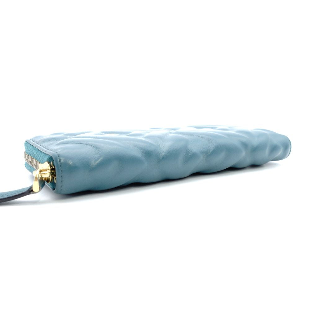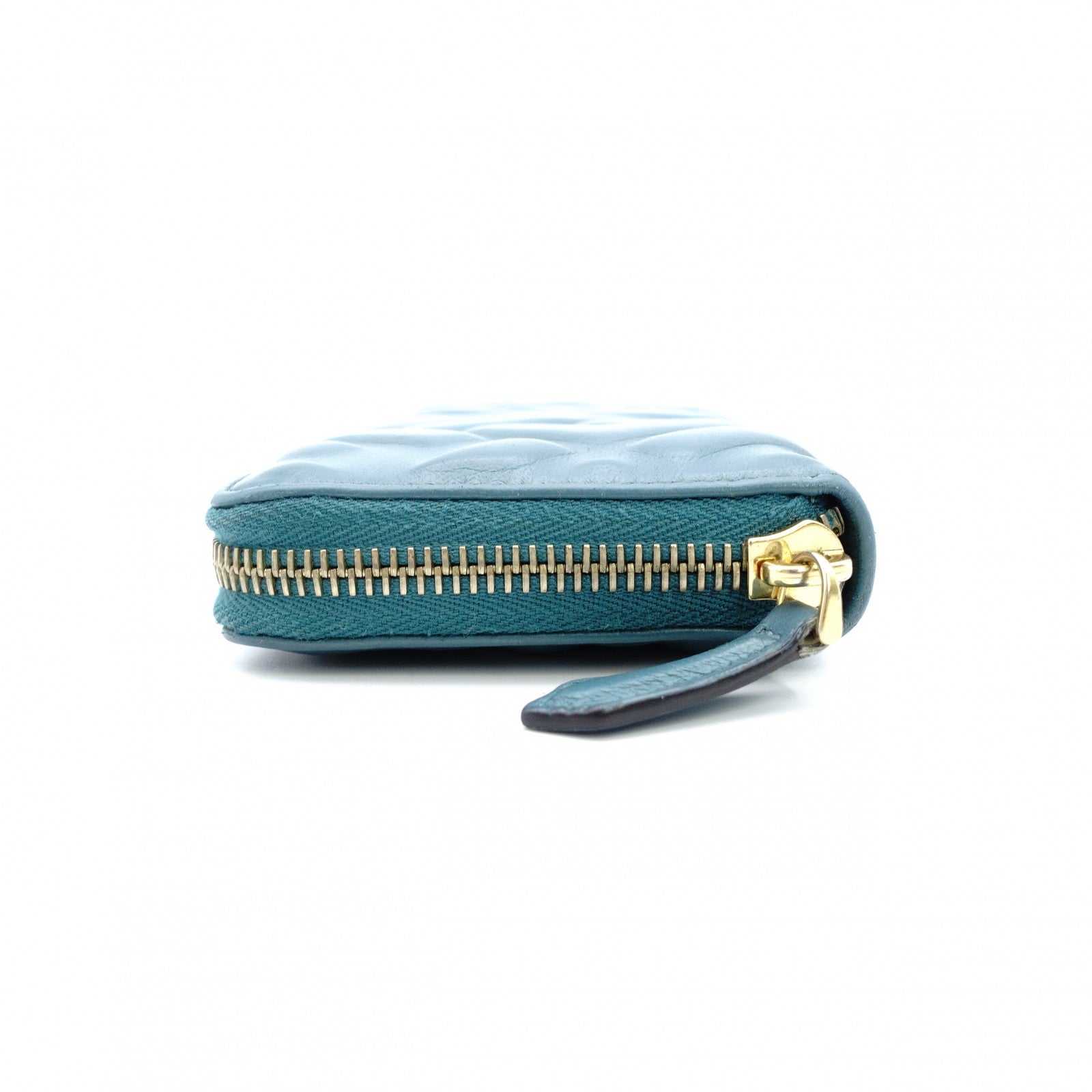 FENDI Zucca Baguette Long Wallet Leather Zippy Wallet Turquoise FF Logo Gold Hardware 7-11-625
