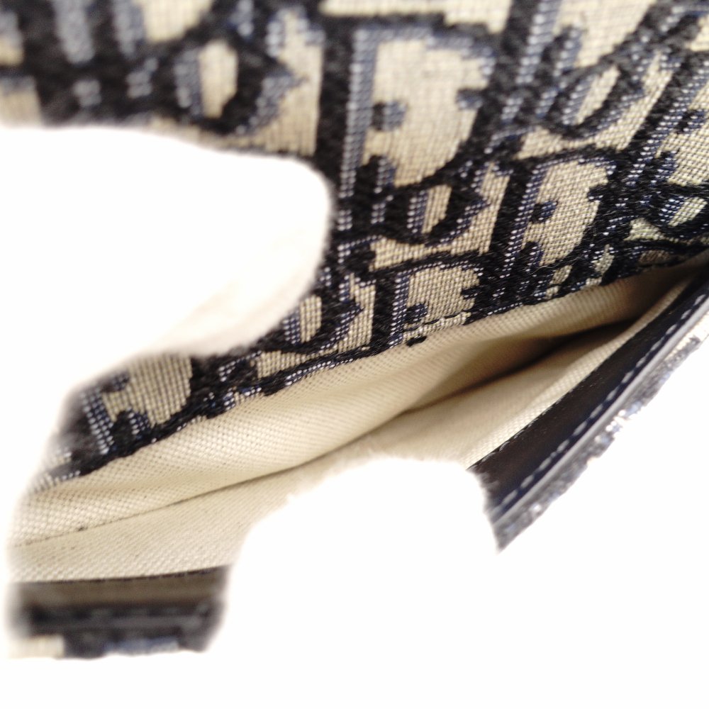 Christian Dior Saddle Bag Oblique Navy × Beige Shoulder Canvas Handbag Leather 7-11-819