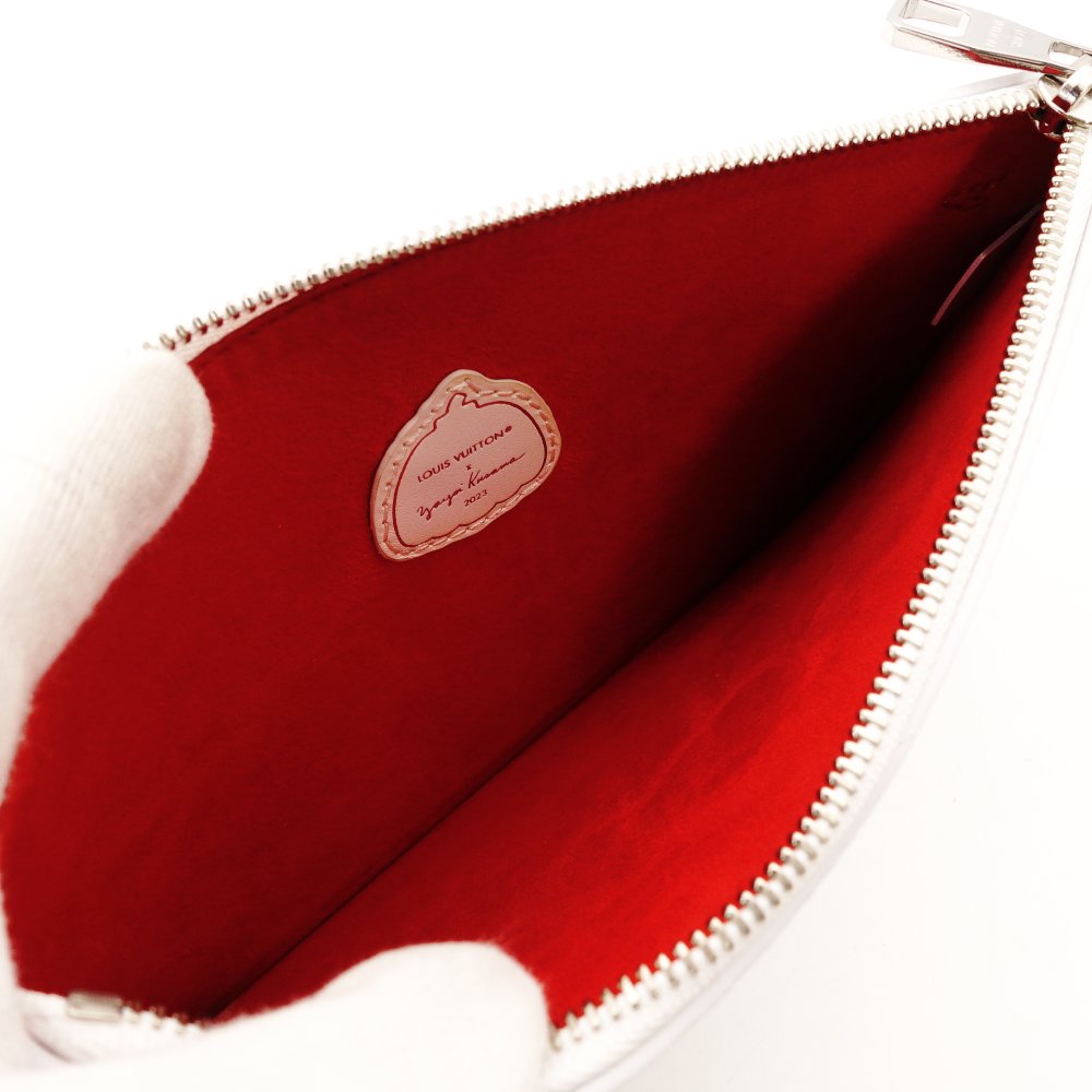 LOUIS VUITTON Neverfull Pouch Infinity Dot Yayoi Kusama Leather White × Red Pouch 7-12-104