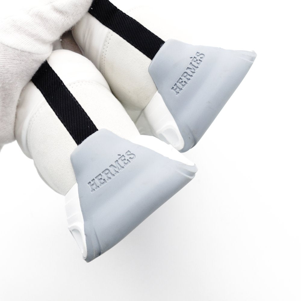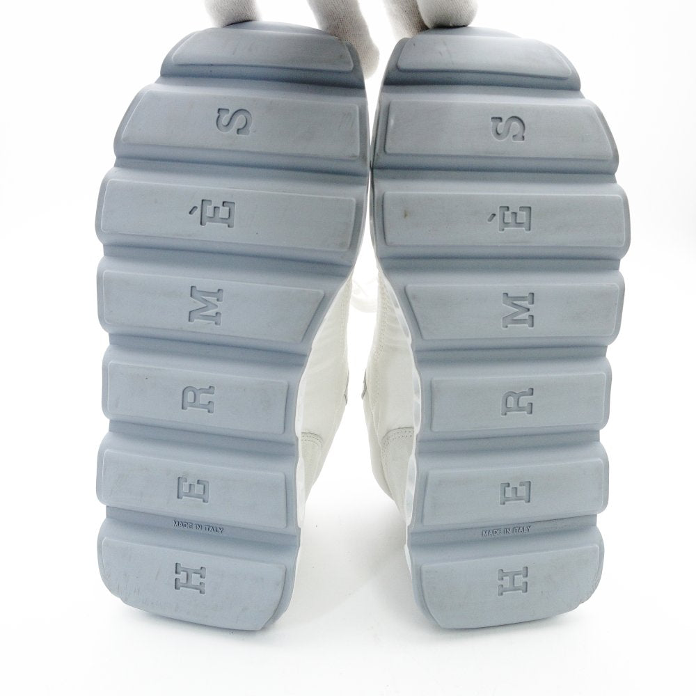 HERMES Impulse Fabric Sneakers Women's Size 37 (approx. 9.3") White × Black Suede Nylon 7-12-168