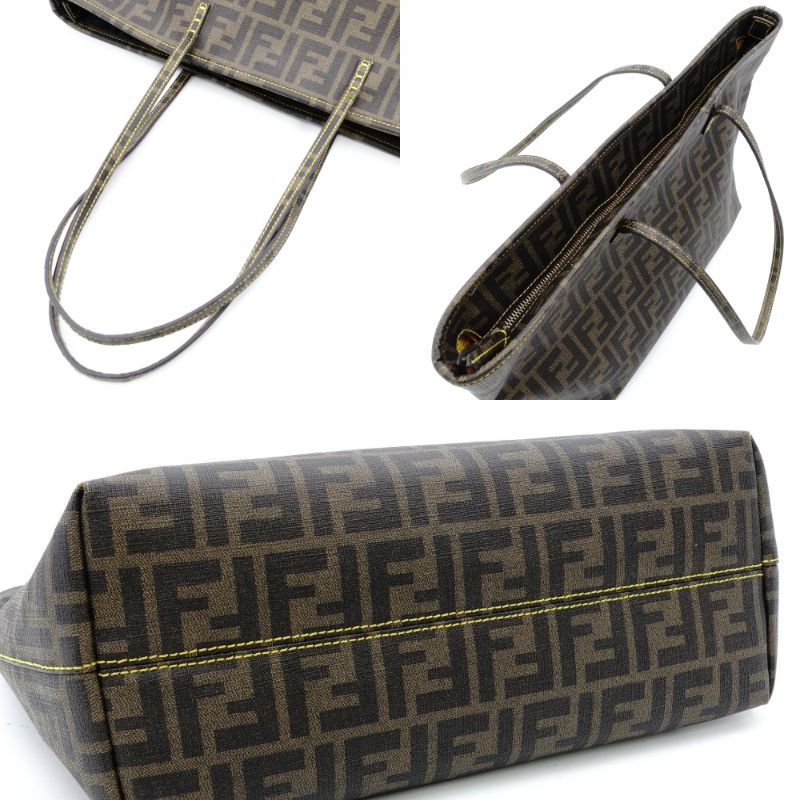 FENDI Zucca Tote Bag Brown Tone Shoulder PVC 7-12-204