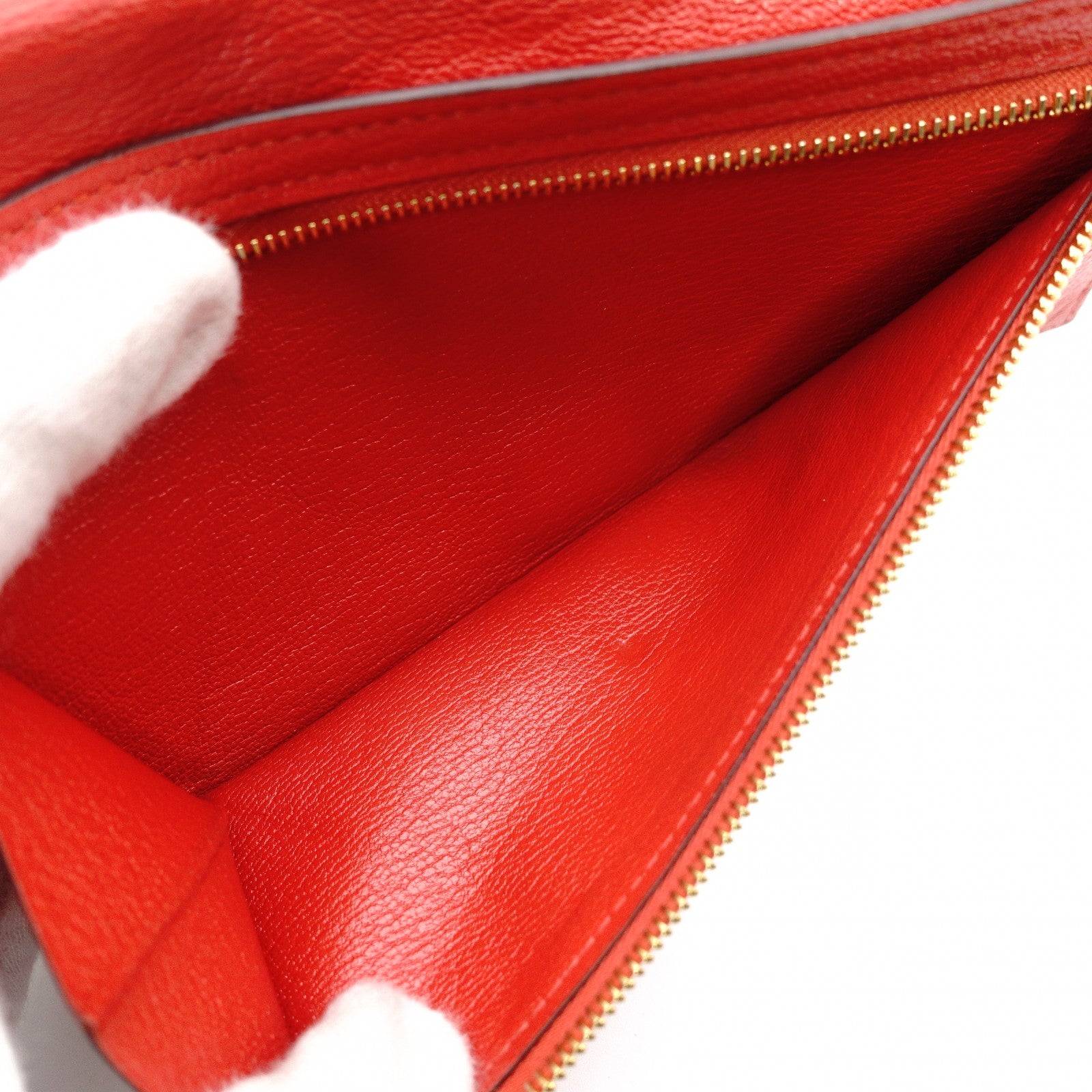 HERMES Veau Soufflé Long Wallet Red Leather Gold Hardware Red X-Stamped Wallet 7-12-282