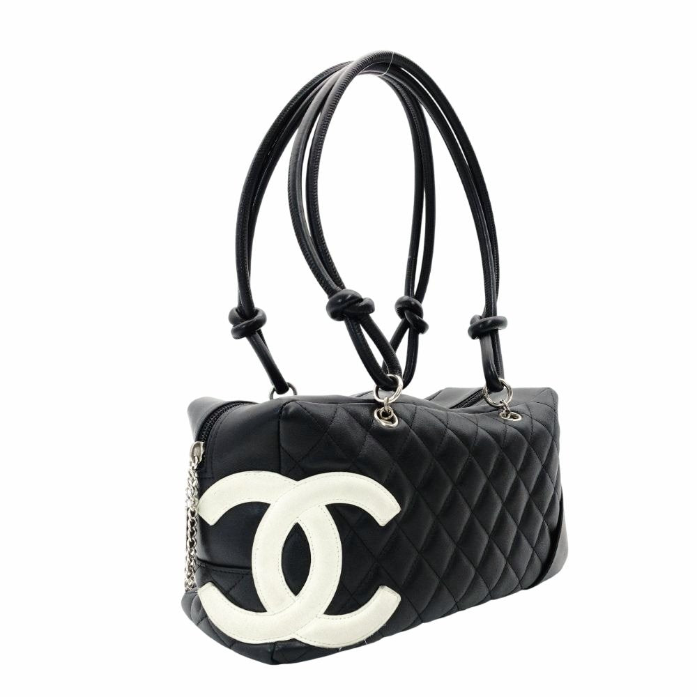 CHANEL Cambon Line Bowling Bag Shoulder Bag Black Leather Lambskin Black CC Logo