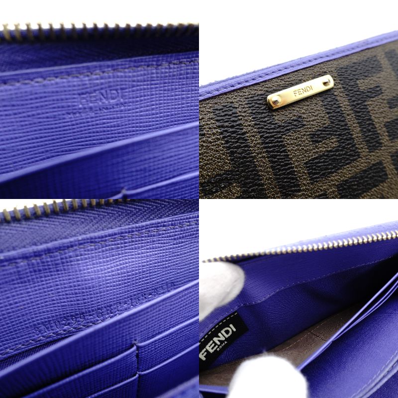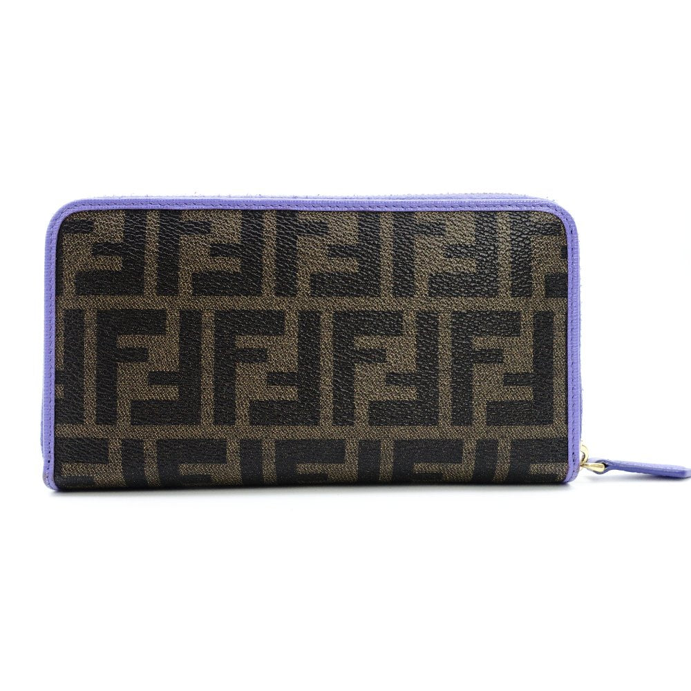 FENDI Zucca Zippy Wallet Long Wallet Brown × Purple PVC Leather Wallet with Box 7-12-533