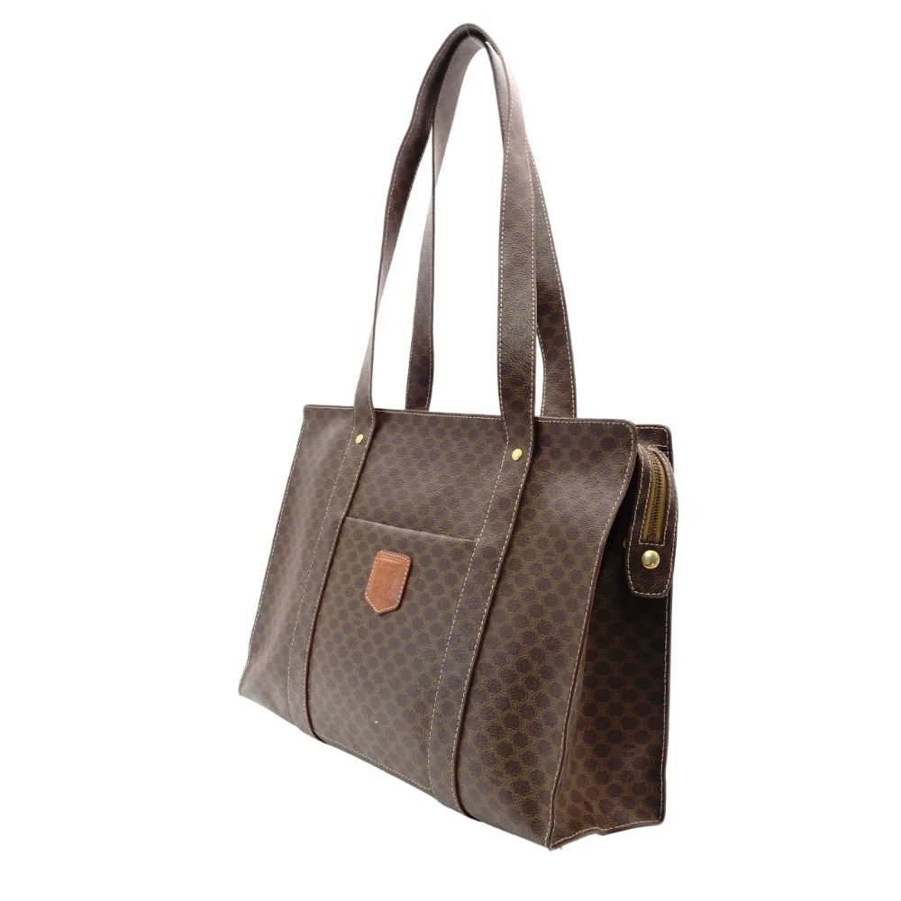 Celine Macadam Tote Bag Brown PVC Shoulder Vintage 7-12-755