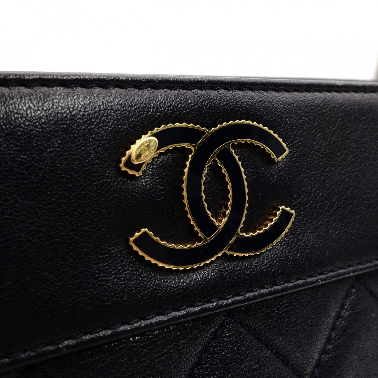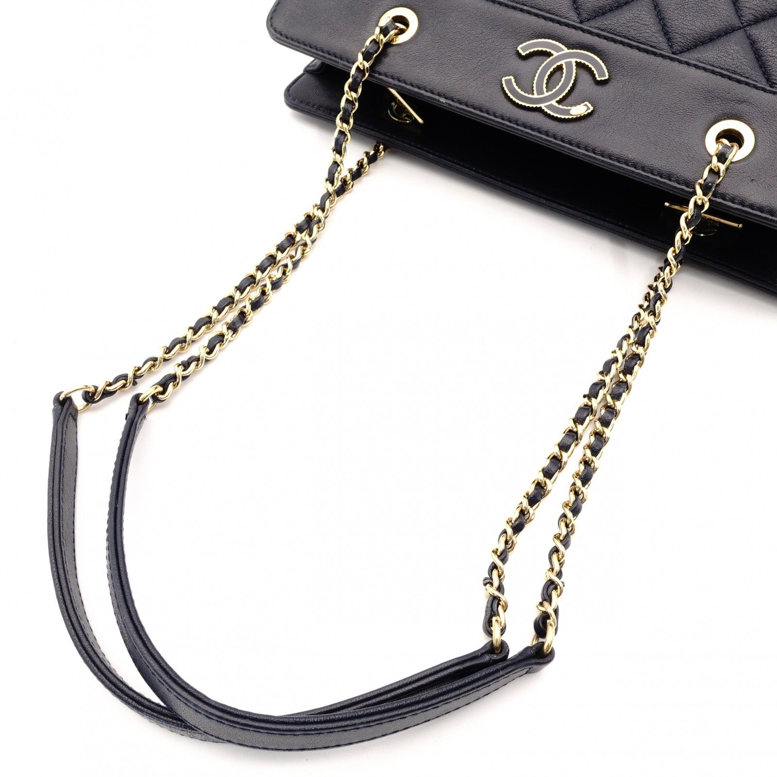 CHANEL Matelassé Chain Shoulder Bag Lambskin Navy Leather Gold Hardware CC Logo 7-12-814