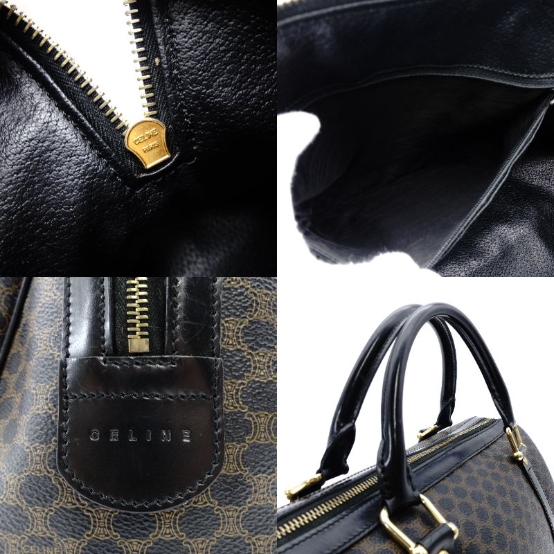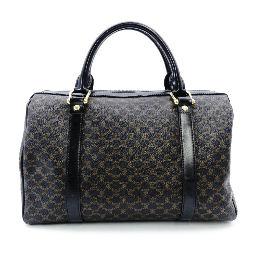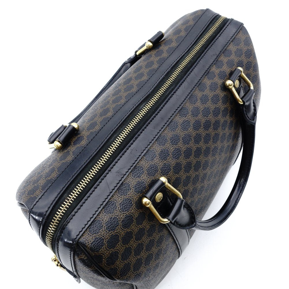 Celine Macadam Boston Bag Handbag Black × Brown PVC Leather Vintage 7-12-861