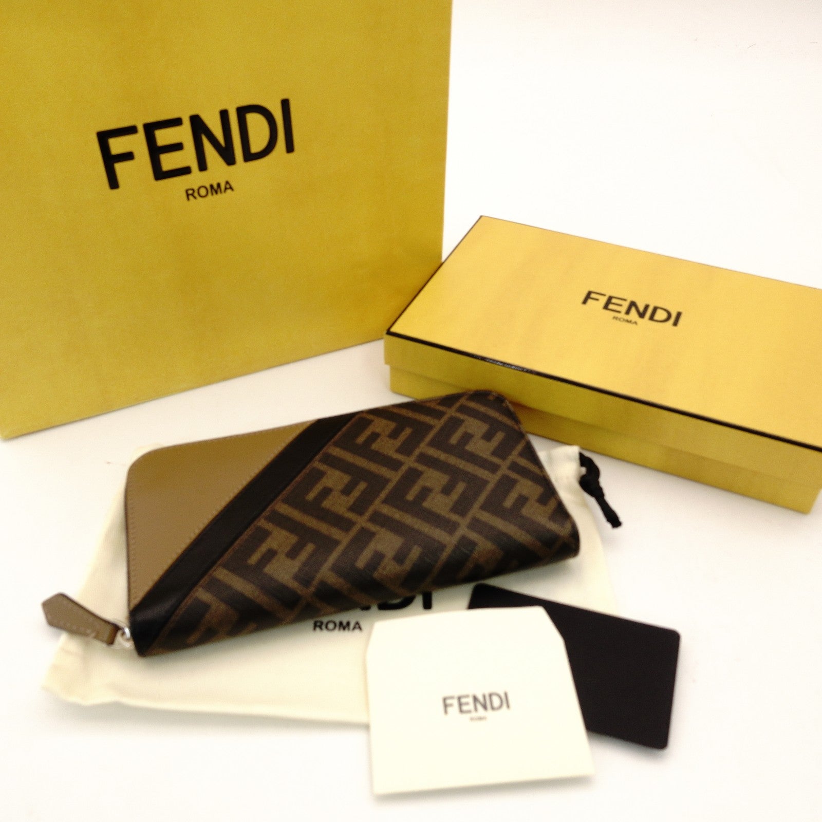 FENDI Zucca Long Wallet Black × Brown Men's Wallet Round Zipper 7-12-914