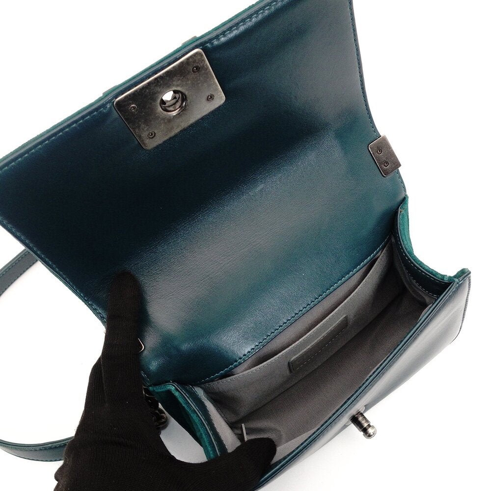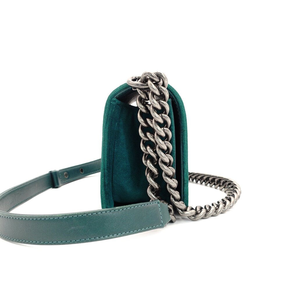 CHANEL Boy Chanel Velour 2Way Green Shoulder Bag Green Women's Simple 7-2-261