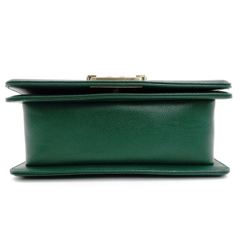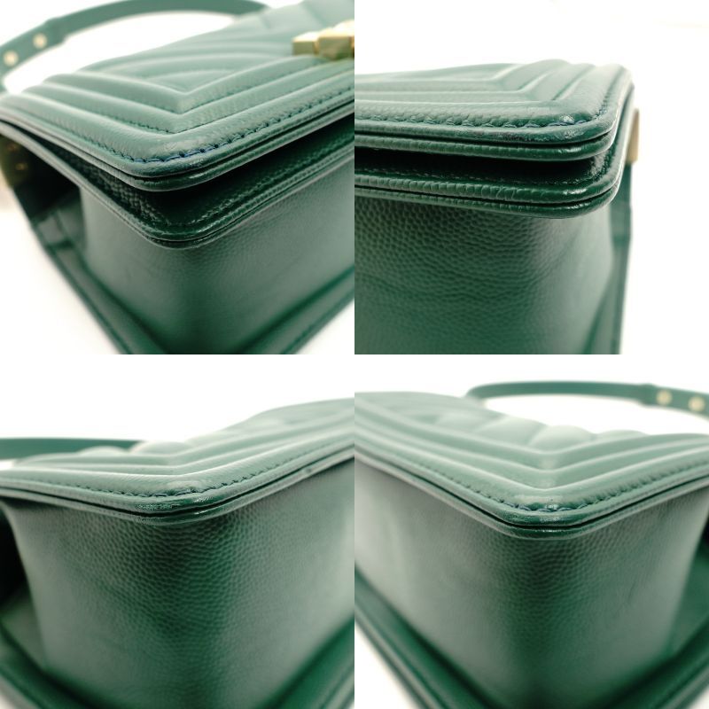 CHANEL Boy Chanel Small Caviar Leather Green Gold Hardware Leather Chain Shoulder Bag 7-5-659