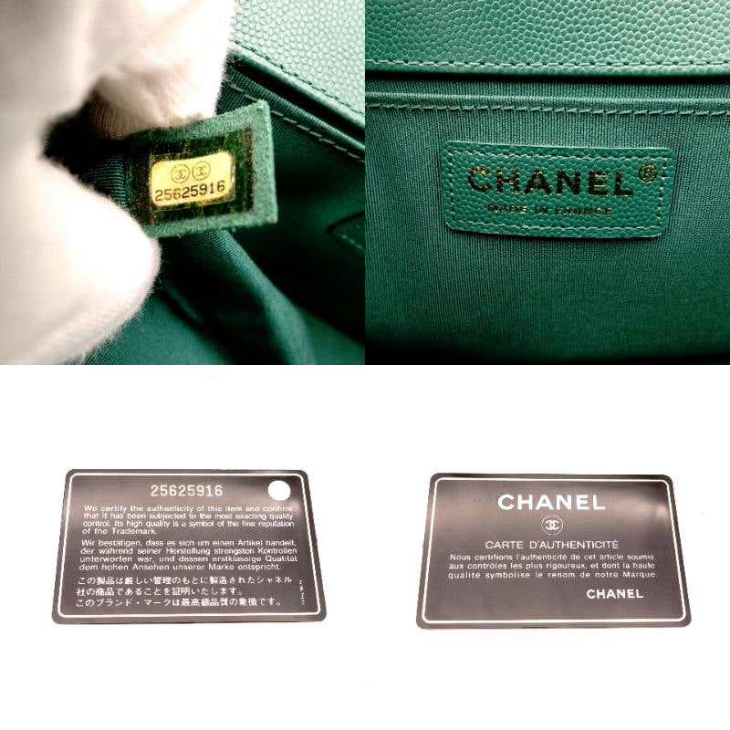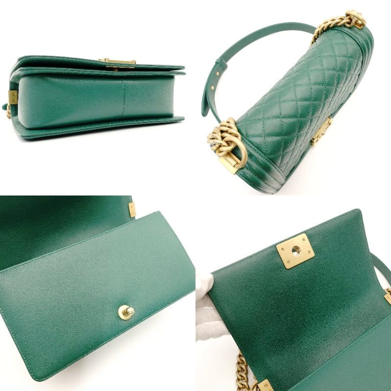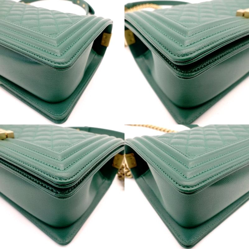 CHANEL Boy Chanel Caviarskin Green Shoulder Bag with Gold Hardware and Chain 7-5-791