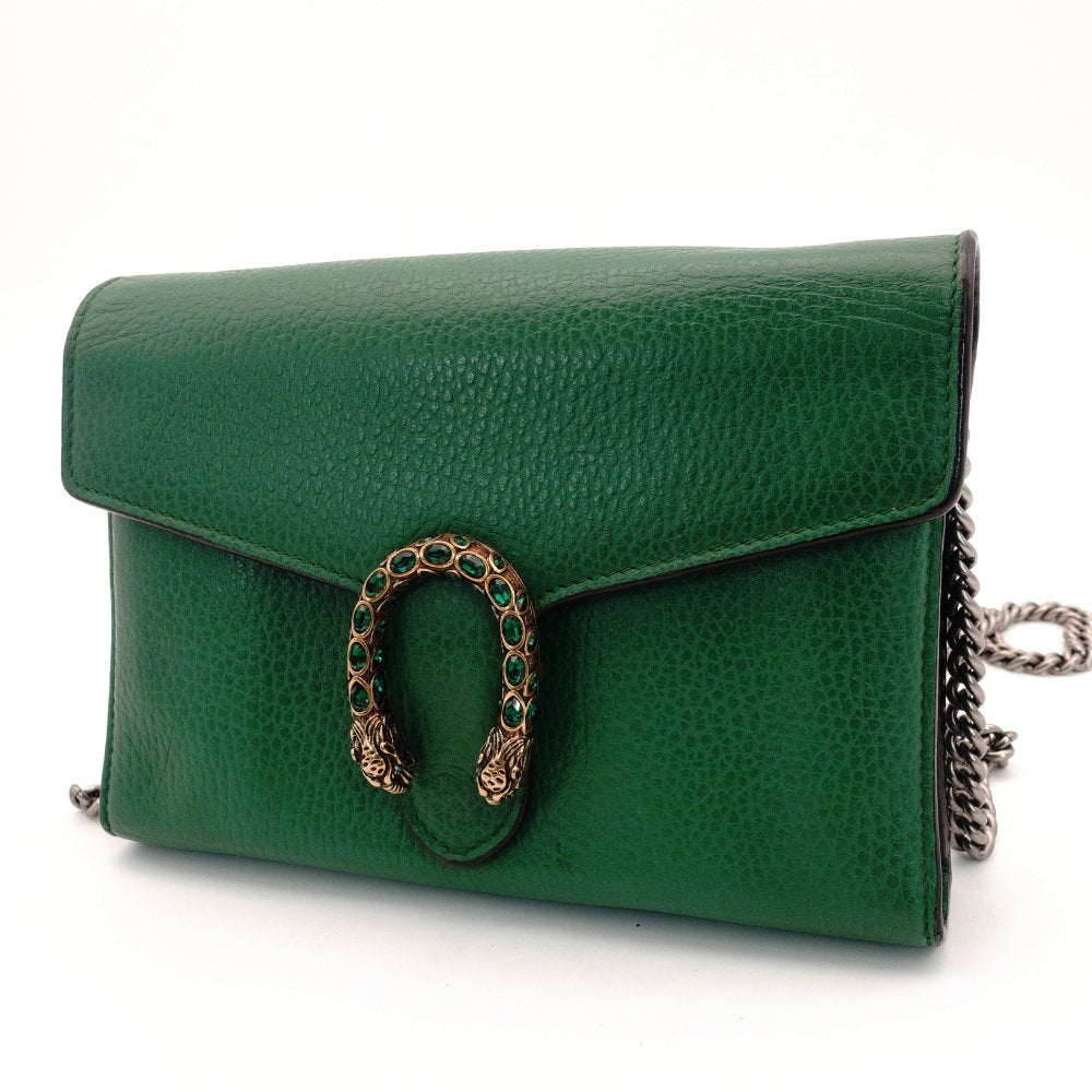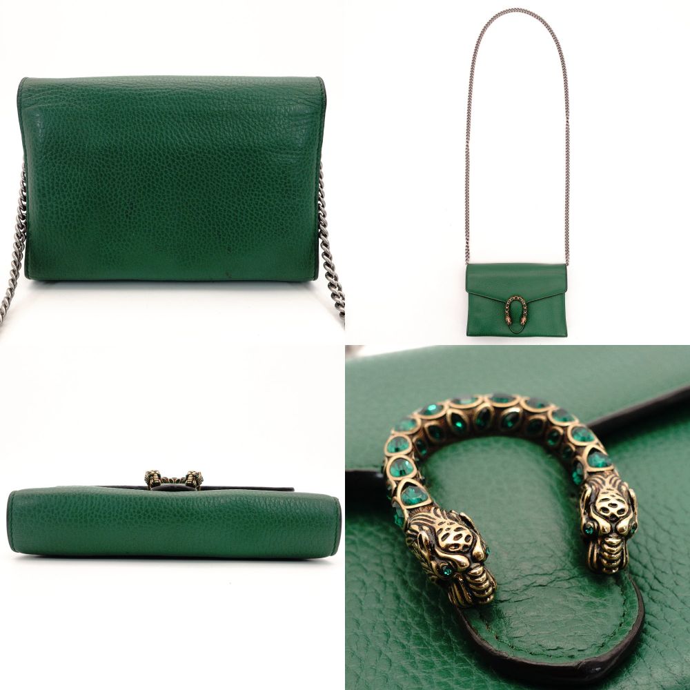GUCCI Dionysus Chain Wallet Green Leather Green Shoulder Bag Rhinestone 7-6-261