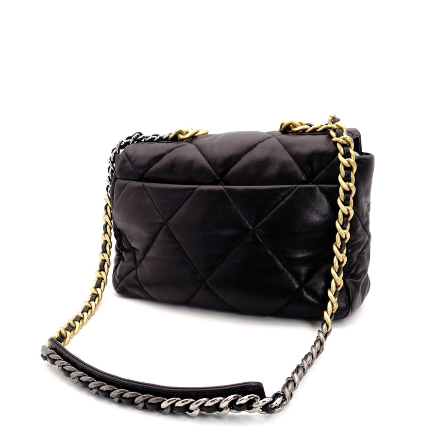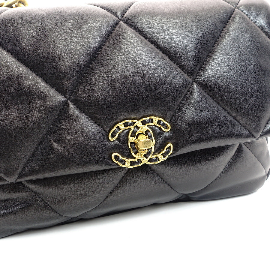 CHANEL 19 Large Shoulder Bag Lambskin Black N9T7H48 Logo Coco Mark 7-6-661