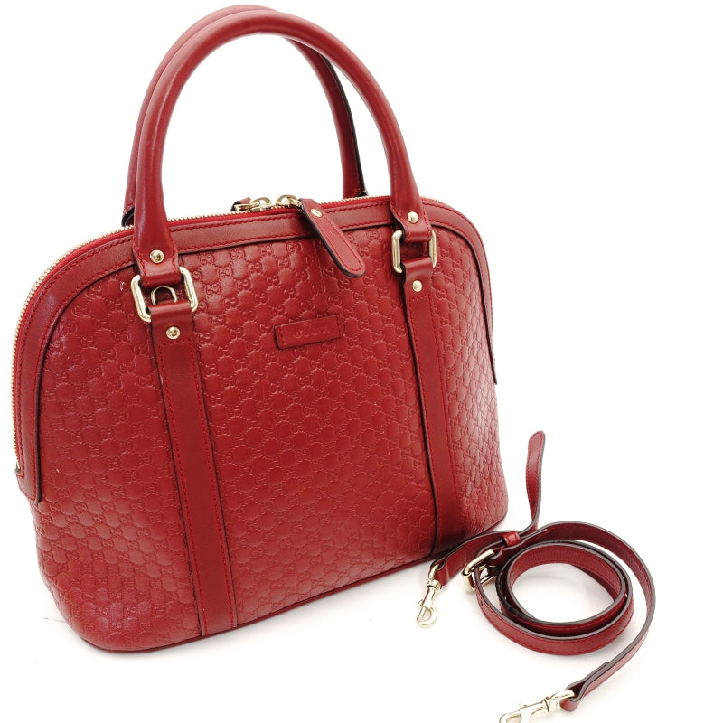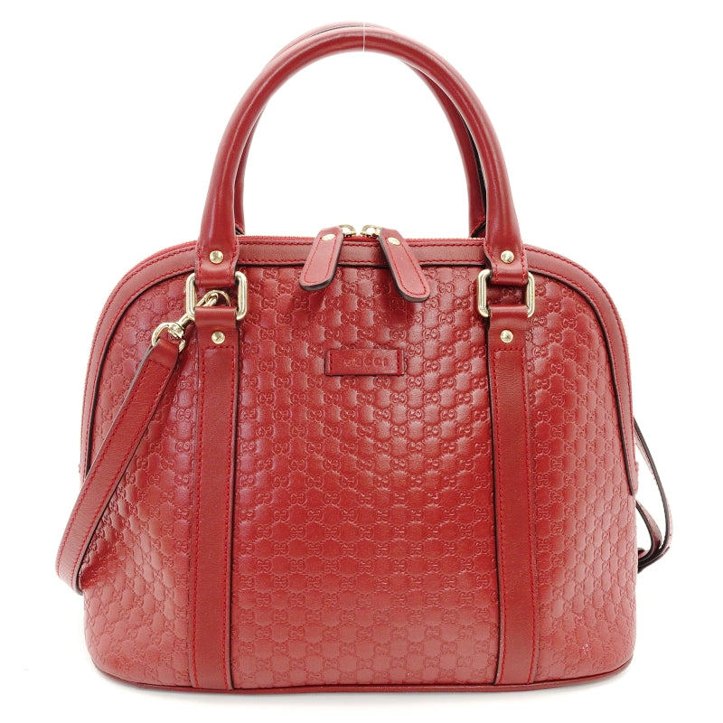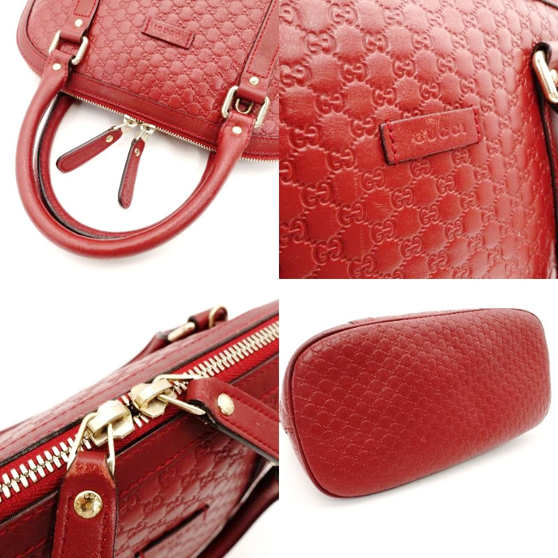 GUCCI Handbag Micro GG Logo Leather Red 2-Way 7-7-238